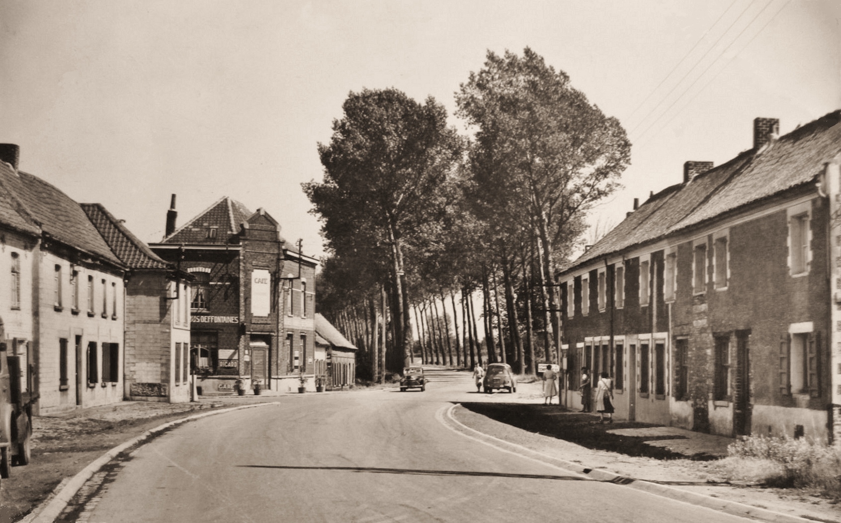 Entrée de Baisieux Sin, année 1958, vue dans l'autre sens, en allant vers la Belgique, on peut voir le café de Marie Montois sur l'angle.