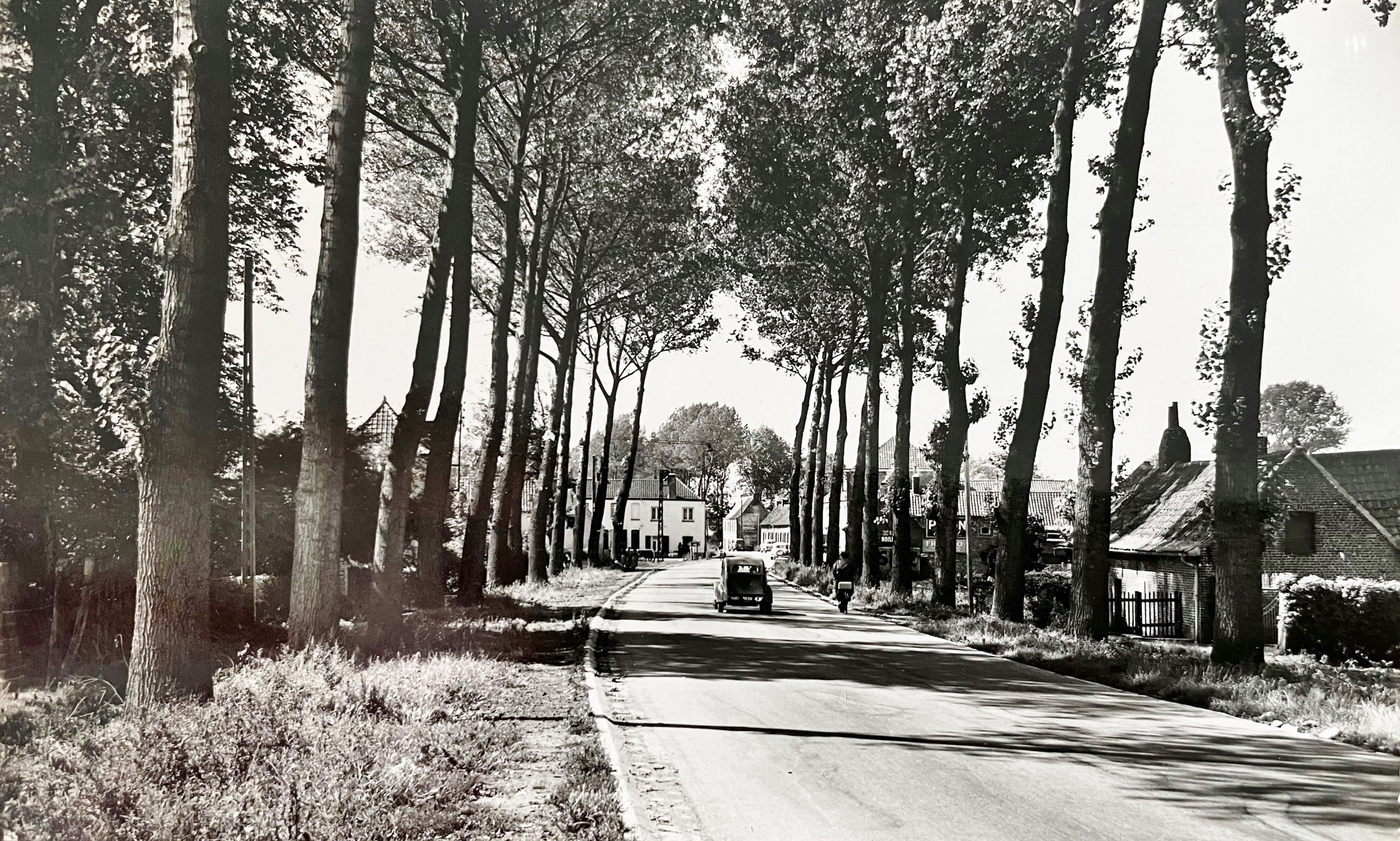 Entrée de Baisieux Sin (en venant de la Belgique), année 1958, il y avait du macadam sur la route nationale 41.
