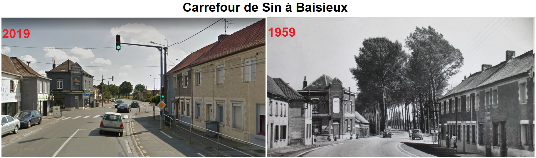 Comparatif Carrefour de Sin en 2019 et 1959 (cliquez sur la photo pour l'agrandir)